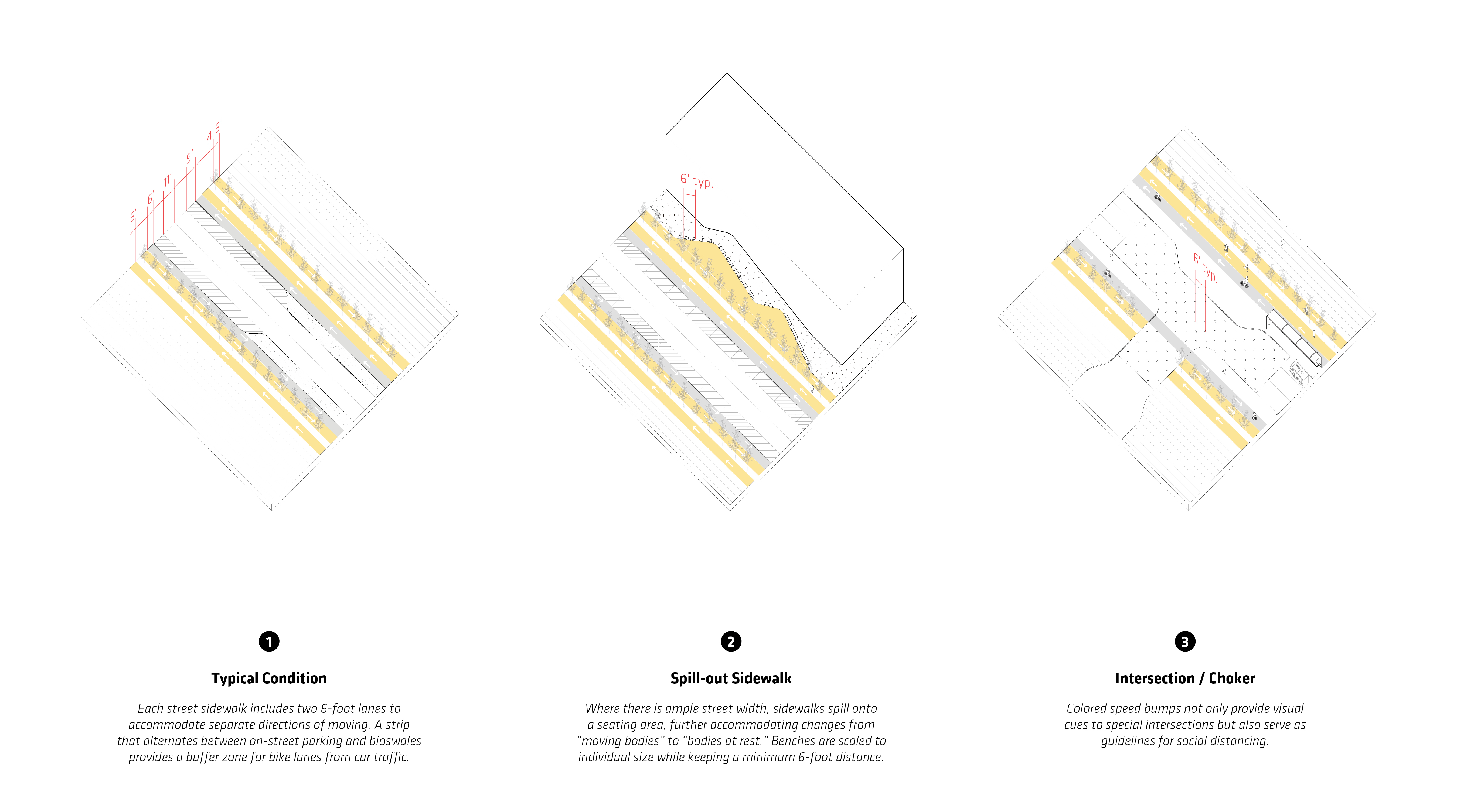 Design guidelines were further developed for landscape elements that intuitively guide users to comply with covid safety mesaures