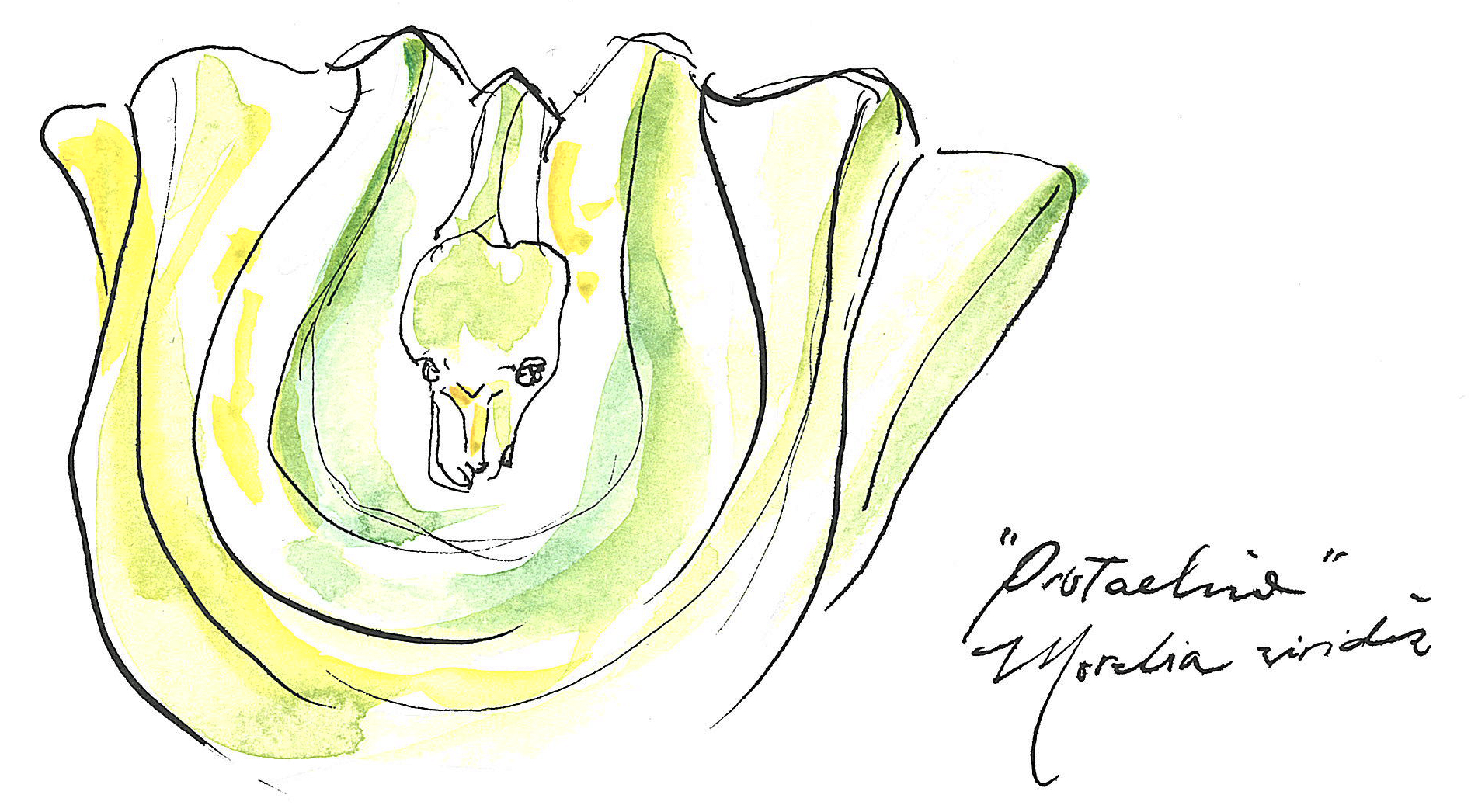 Quick live sketch of Pistcachio the Green Tree Python at the Field Museum’s Reptiles Alive! exhibit.